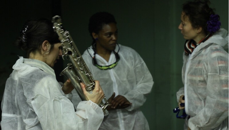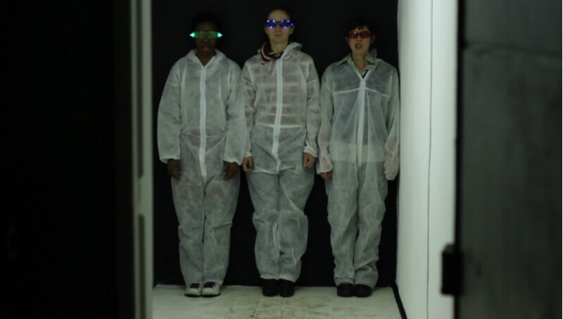 ."Bare-Faced" performance .Lazara Rosell Albear, Audrey Lauro, Margarida Guia .Kunsthaus Dresden exhibition "Boundary Objects", July 2015 © Estelle Lecaille/mosso |